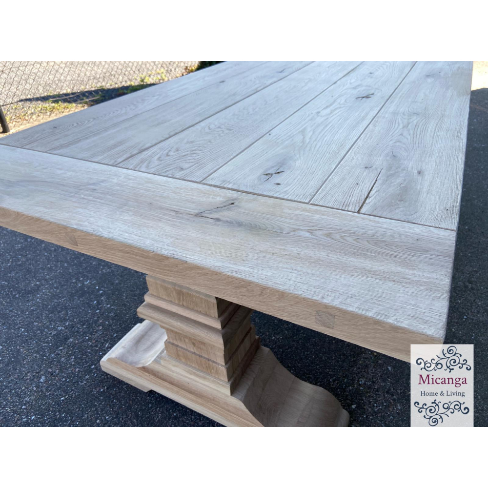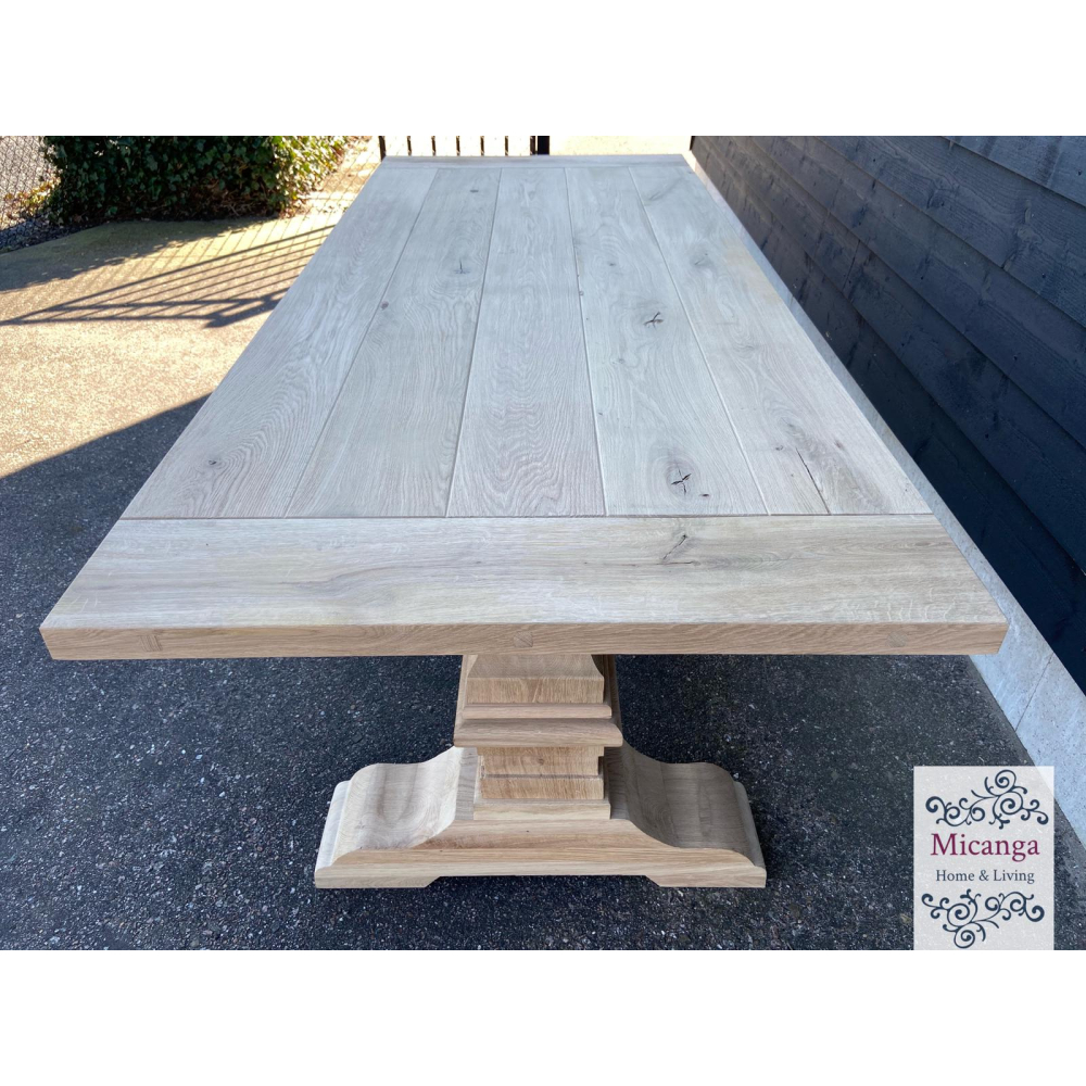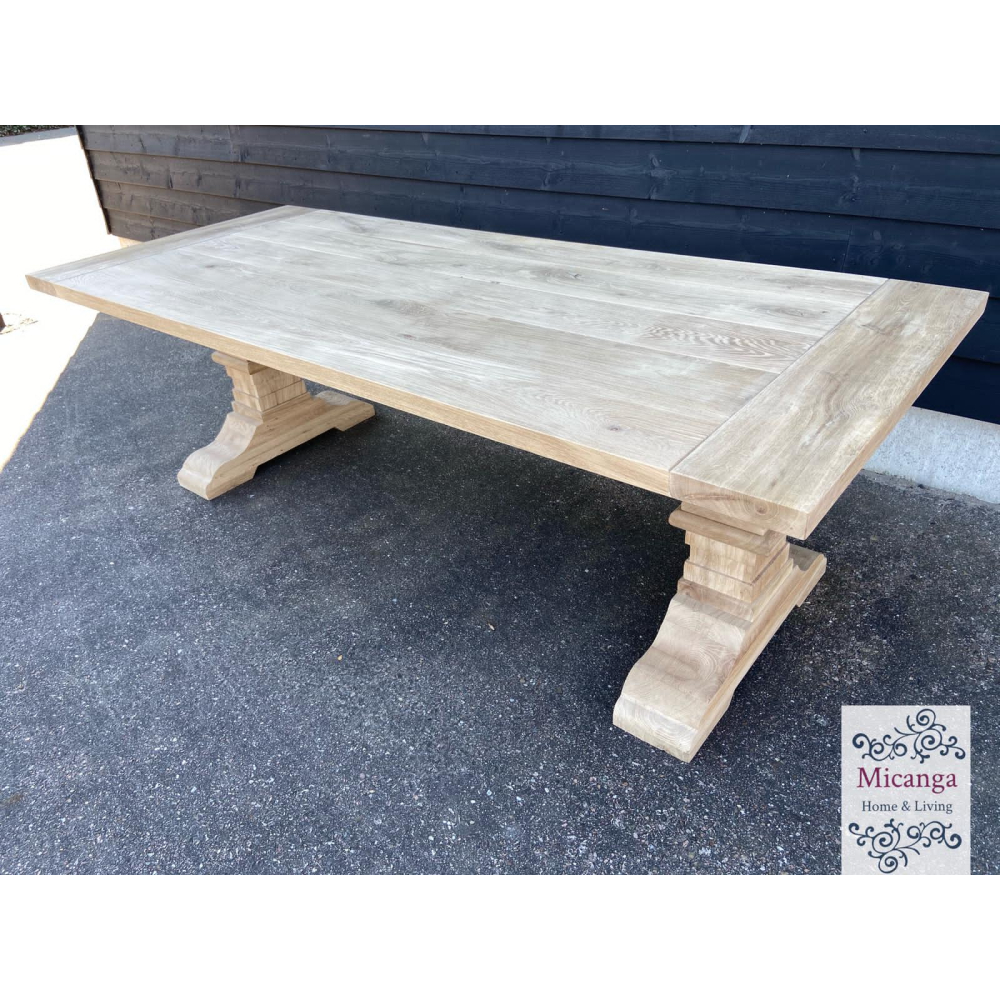 De kloostertafel 'Nice' is voorzien van een eiken tafelblad van 4.5-4.8cm.