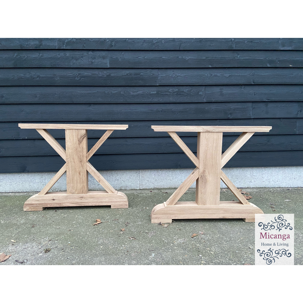 Rustiek eiken onderstel voor uw kloostertafel in eiken waarop u zelf uw eigen blad kunt plaatsen. Eenvoudig en voordelig uw eigen kloostertafel!